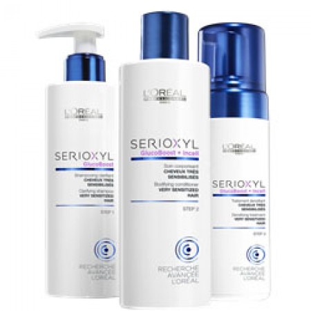 To maximise the effects of the L’Oréal Professionnel Serioxyl densifying or thickening treatment serums, and to achieve instant feeling anti-thinning results, L’Oréal Advanced Research has developed our groundbreaking follow-up at-home program, the Serioxyl Kit 3 for very Sensitized hair.